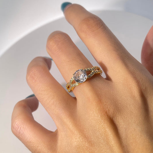 Warm Fortune Cubic Zirconia Engagement Ring for Women,18K Gold Plated Anniversary Ring,Gift for Her Promise Ring