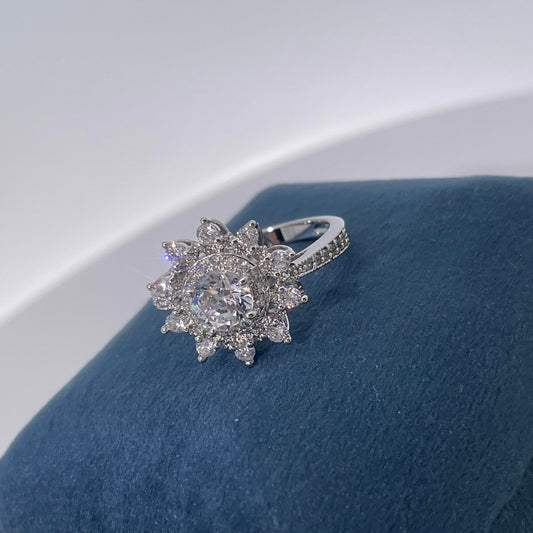 Warm Fortune Cubic Zirconia Engagement Ring for Women, 925 Sterling Silver with 18K White Gold Plated Anniversary Ring, Gift for Her Promise Ring,Adjustable