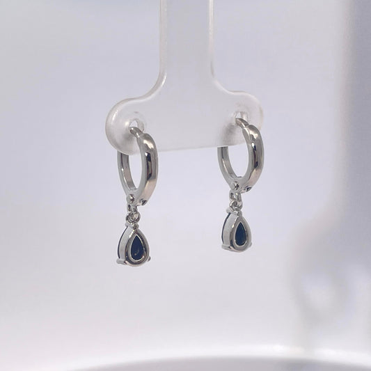 Warm Fortune Navy Blue Teardrop Gemstone Dangle Hoop Earrings, Silver Tone Fashion Jewelry for Women, Chic Daily & Evening Wear