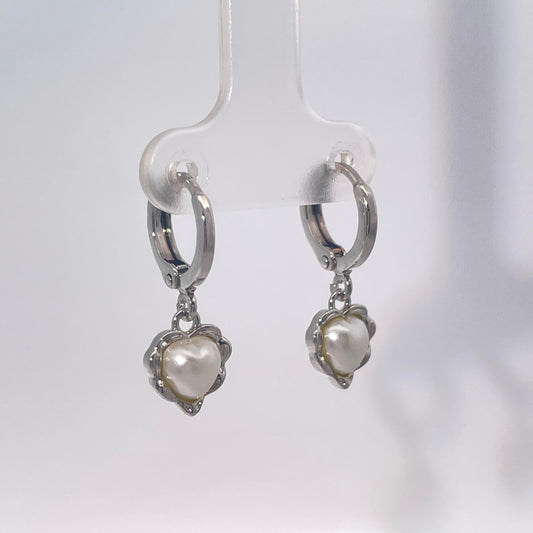 Warm Fortune Heart Shape Pearl Dangle Hoop Earrings, Silver Tone Romantic Fashion Jewelry for Women, Sweet Daily & Dating Accessory