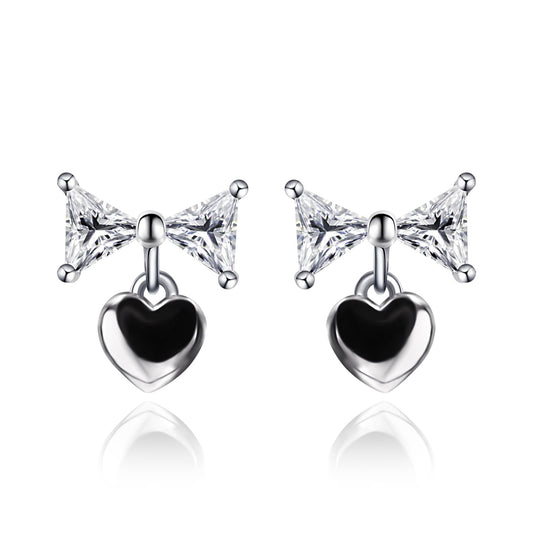 Warm Fortune Moissanit Bow Stud Earrings for Women, DE VVS Lab Created, Brilliant Round Cut, 925 Sterling Silver with 18K White Gold Plated Hypoallergenic