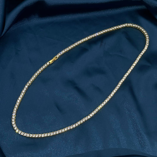 Warm Fortune Tennis Chain Necklace for Women Men,Iced Out Gold Plated Cubic Zirconia,18inch Chain,Hip Hop Street Style Fashion Jewelry
