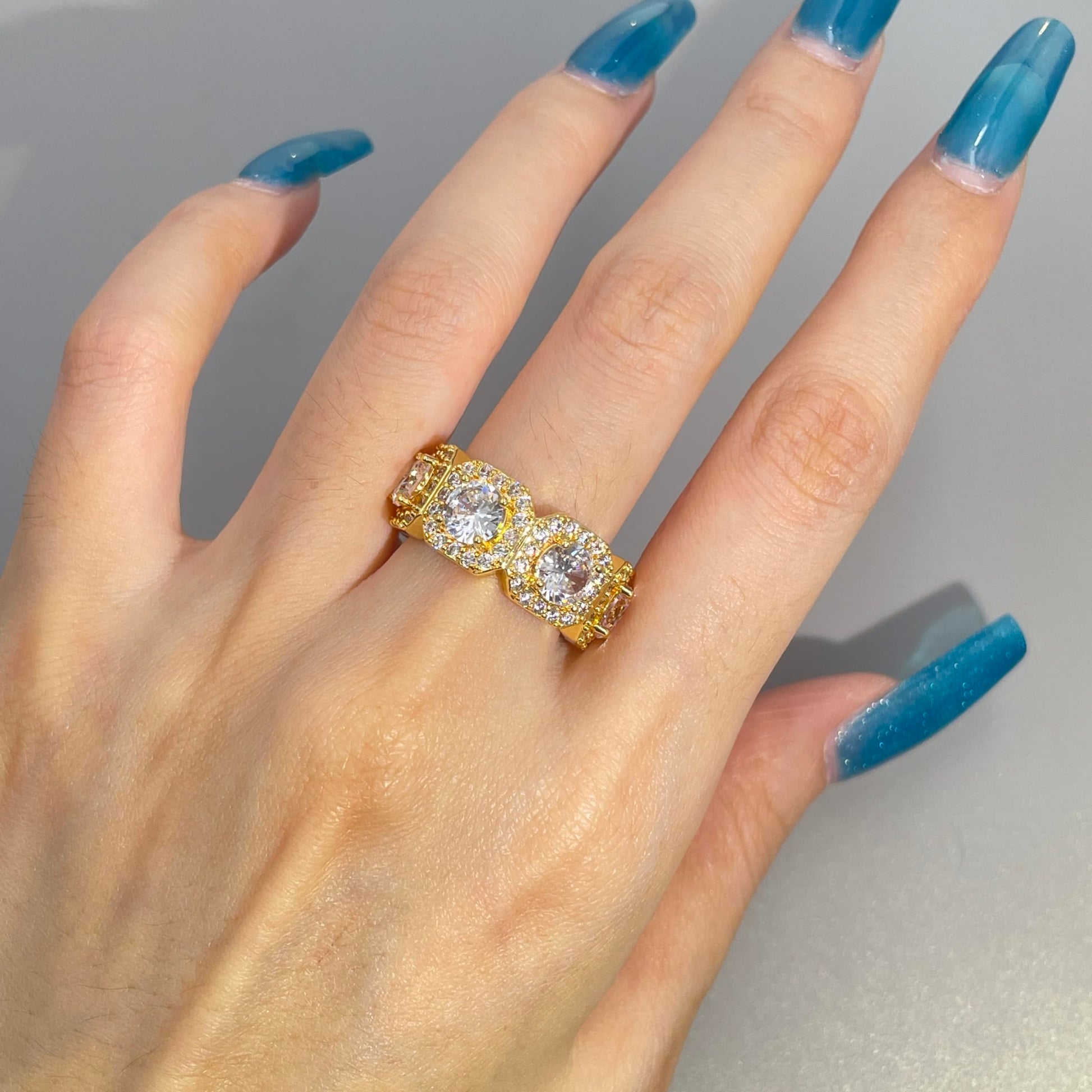 Warm Fortune Gold Plated Cubic Zirconia Band Ring, Hip Hop Street Style For Man or Women Fashion Jewelry