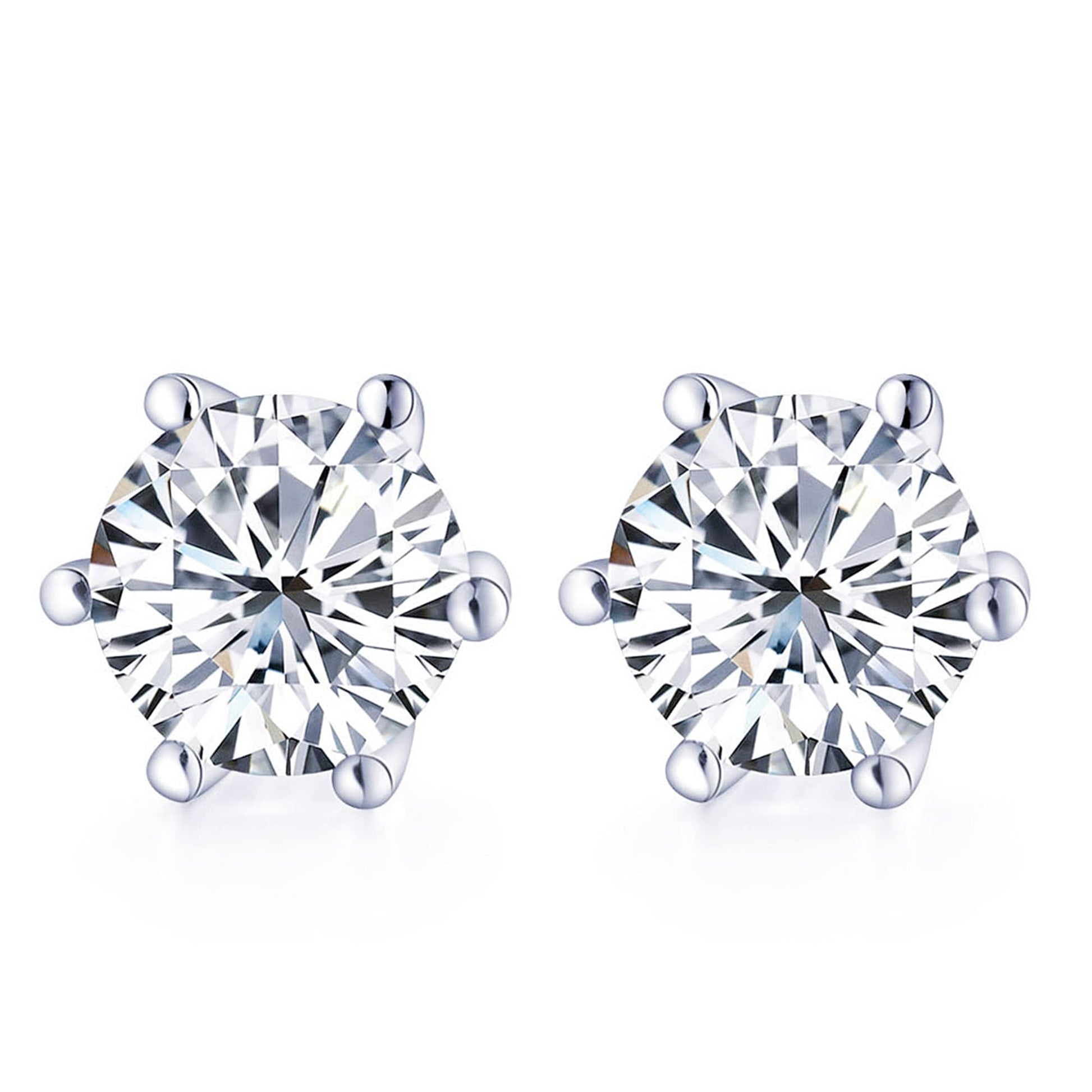 Expertly crafted from solid 925 sterling silver and adorned with a luxurious 18K white gold plating, these earrings are both a testament to quality and a vision of refined beauty. The secure, classic 6-prong settings cradle the impeccably cut brilliant round solitaire stones, ensuring their exceptional fire and sparkle are displayed in full glory, while the hypoallergenic posts feel seamless and gentle against the skin.