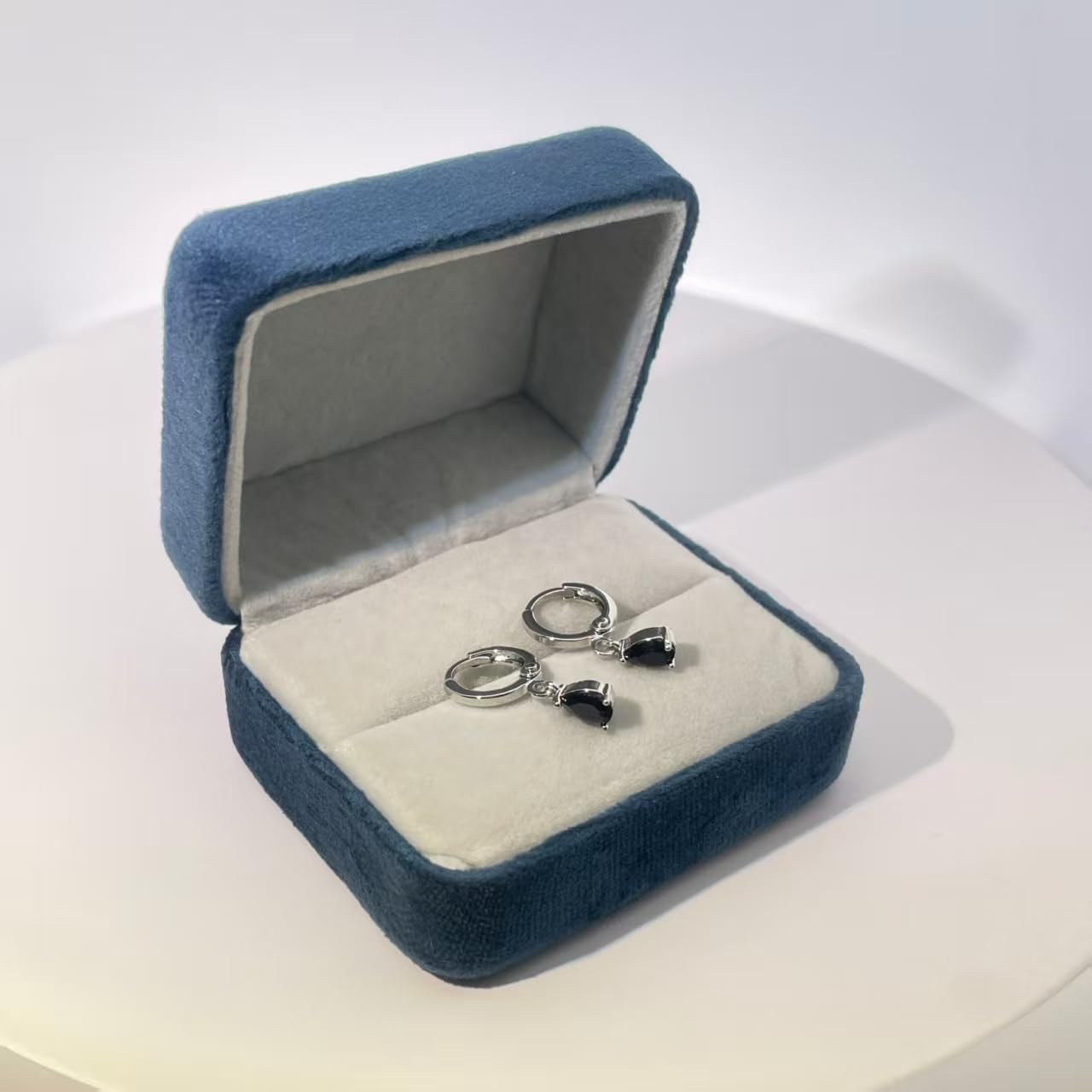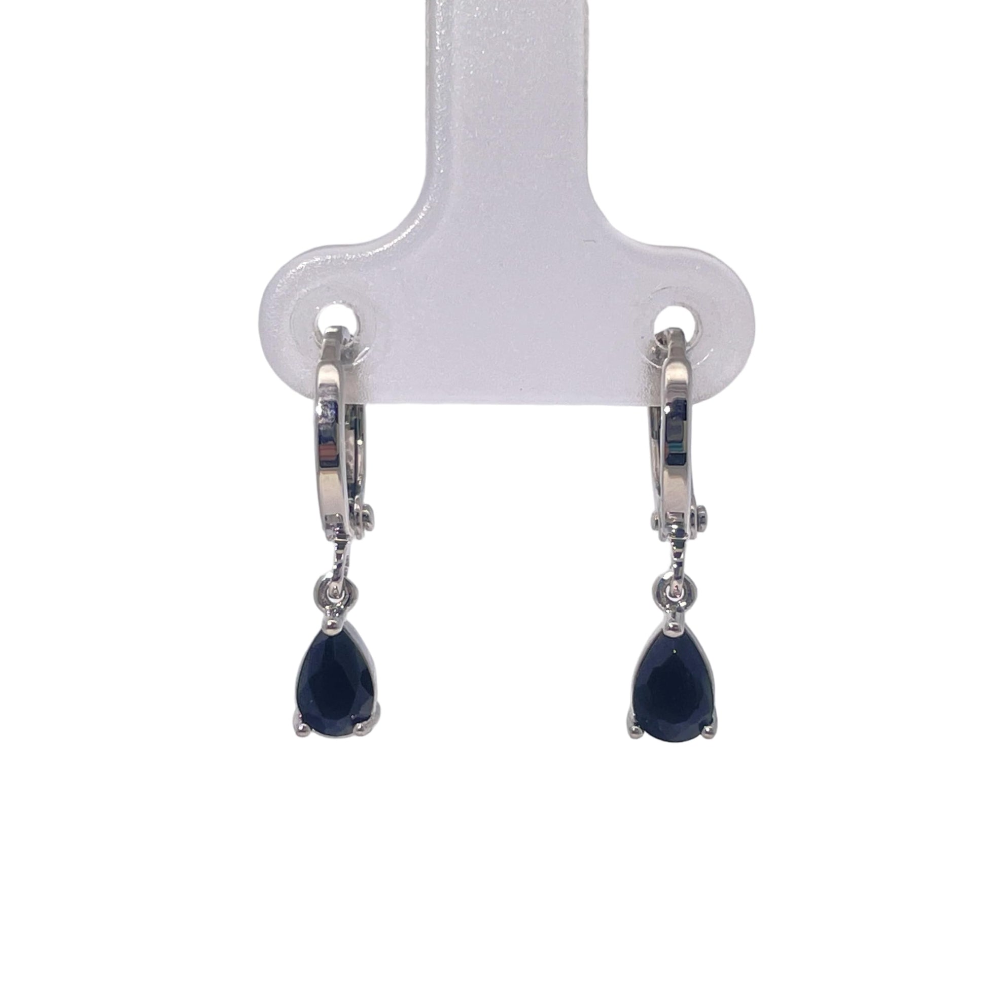 Warm Fortune Navy Blue Teardrop Gemstone Dangle Hoop Earrings, Silver Tone Fashion Jewelry for Women, Chic Daily & Evening Wear