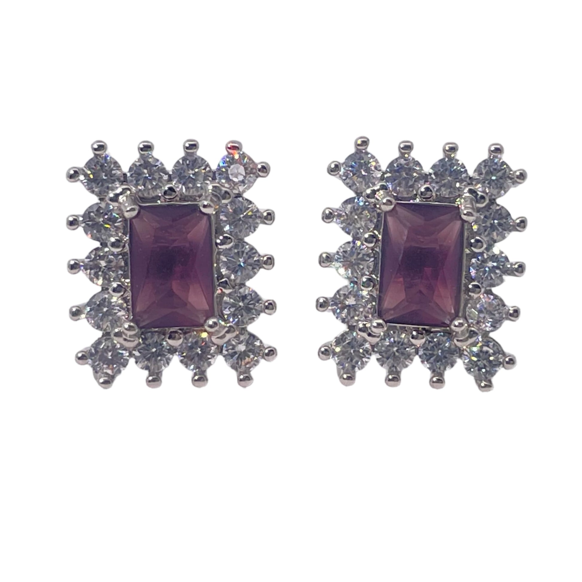 Warm Fortune Rectangle Gemstone Halo Stud Earrings for Women, 2 Colors (Pink/Deep Purple) with Cubic Zirconia Accents, Silver Tone Fashion Jewelry for Elegant Daily & Event Wear
