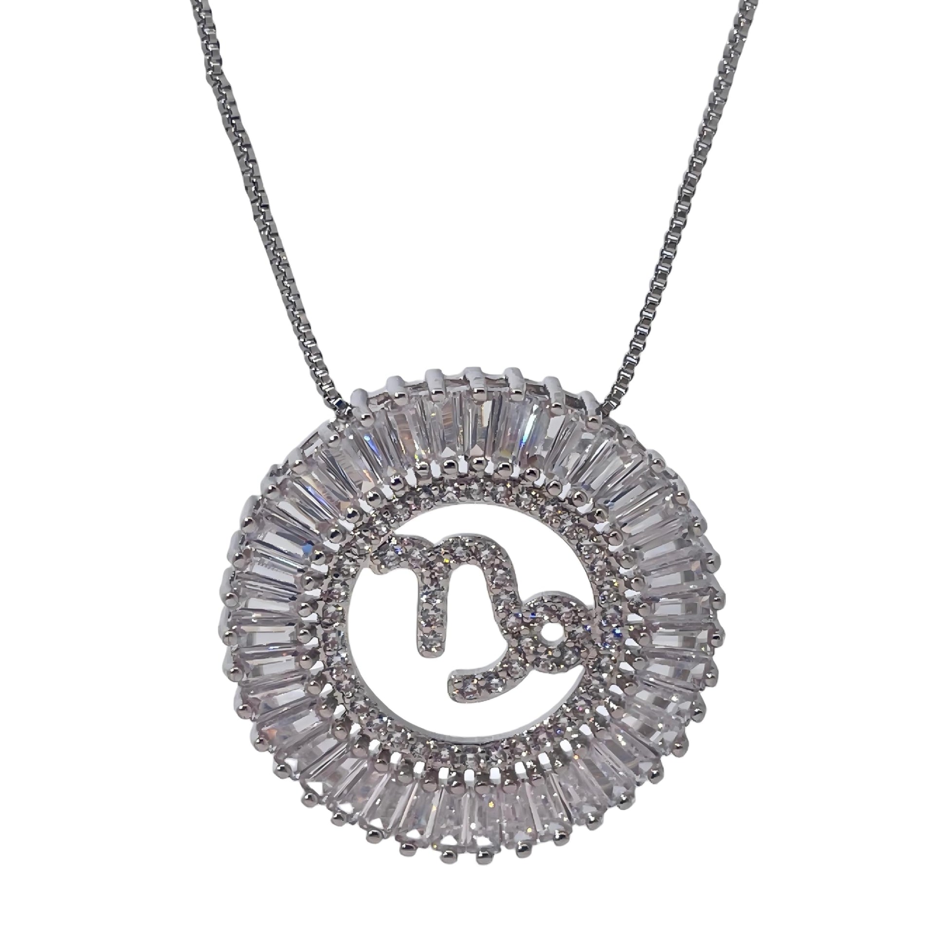 Warm Fortune Zodiac Pendant Necklace for Women,Cubic Zirconia,18K White Gold Plated,18 inch + 2inch Chain